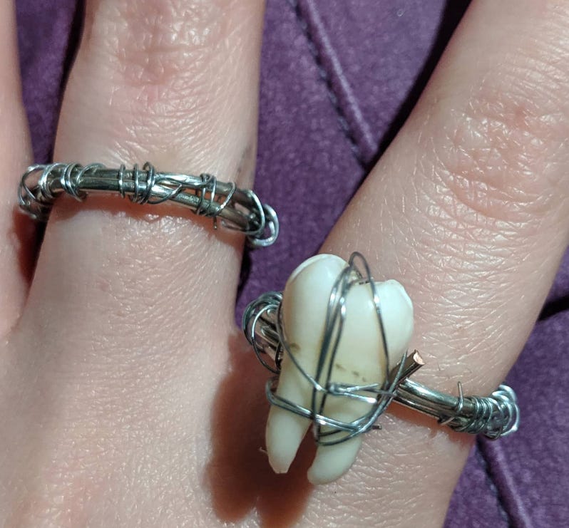 In a past year’s gift guide I recommended one of your teeth, and I’m re-upping that recommendation here because one of my wisdom teeth just erupted. One of the best gifts I’ve ever gotten was my friend Kyle’s tooth; I made it into this ring with loose wire that scratched up my finger and tore up my clothes every time I wore it. I still have it on my to-do list to take it to a jeweler and get it professionally set. (any jeweler recommendations for the job?)