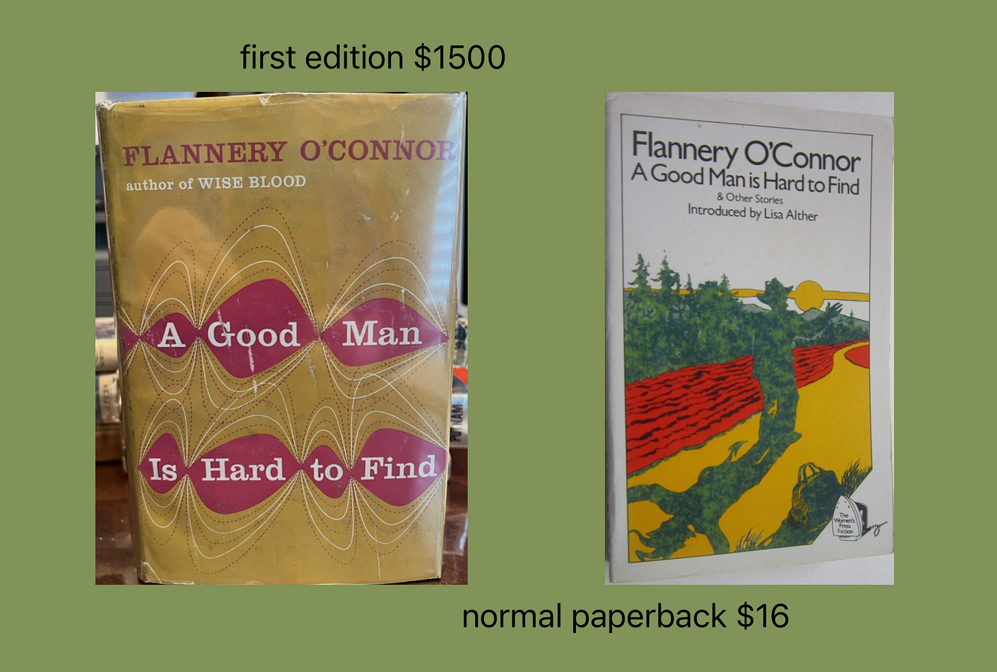 Here’s a Flannery O’Connor first edition for $1500, lol. Here’s a cover I like better than the ugly one I already own for $16.